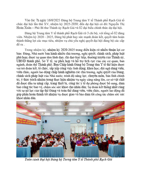 - (05/11/2025 02:26:00 PM) - Đại hội Đảng bộ Trung tâm Y tế Rạch Giá tổ chức đại hội lần thứ XV)