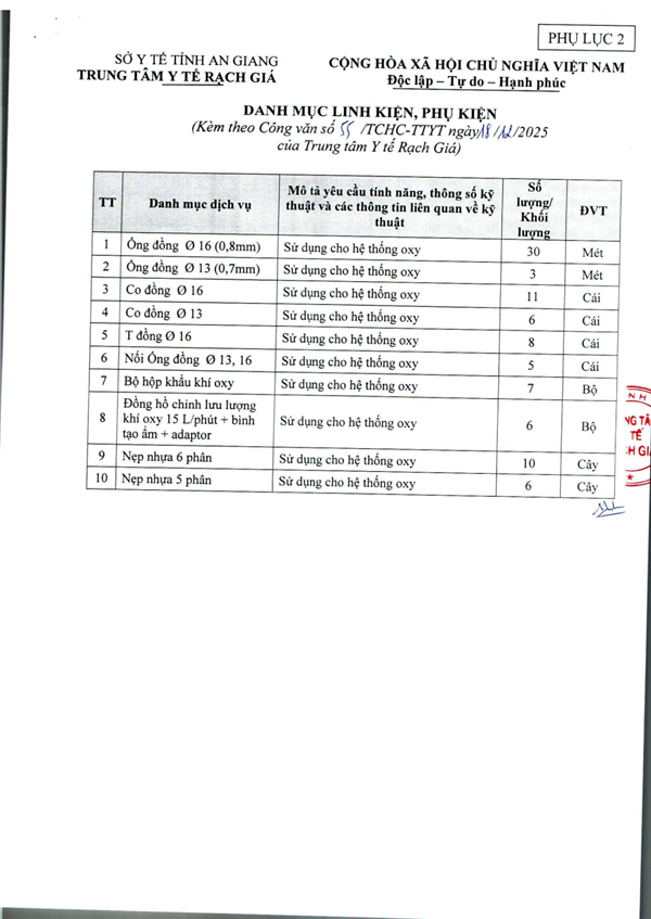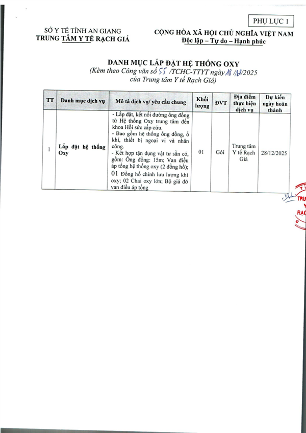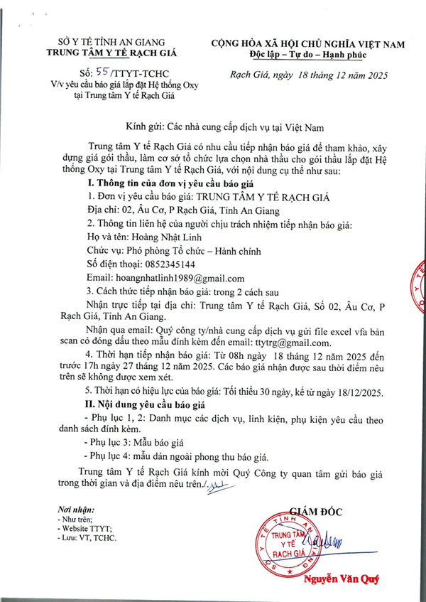 - V/v yêu cầu báo giá lắp đặt Hệ thống Oxy tại Trung Tâm Y Tế Rạch Giá